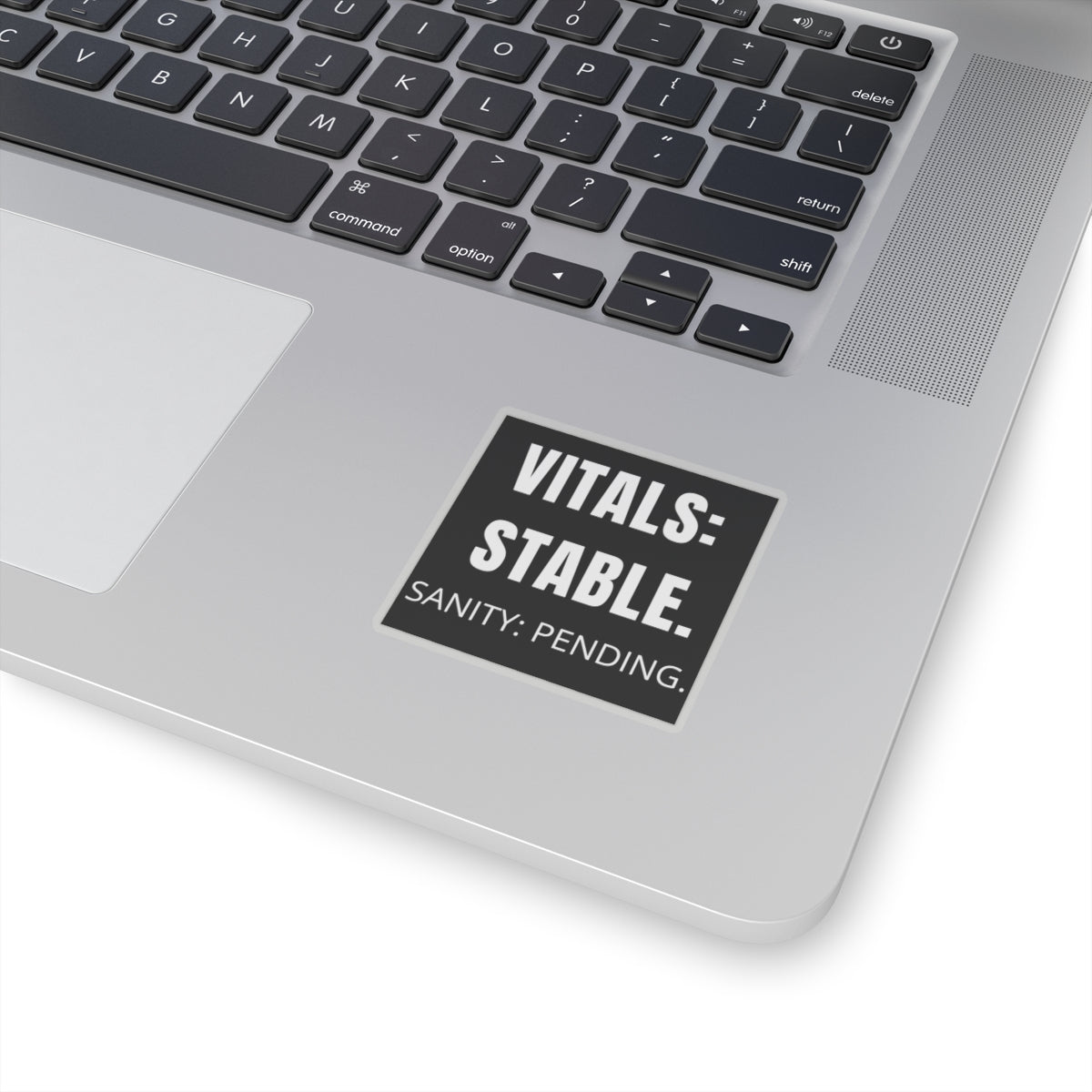 This 2x2 inch sticker is for the nurse who knows that “stable” is just a polite way to say “actively spiraling, but still documenting.” Slap it on your badge reel, your water bottle, or the crash cart of your coping mechanisms. Bonus points if it’s covering a tear stain.